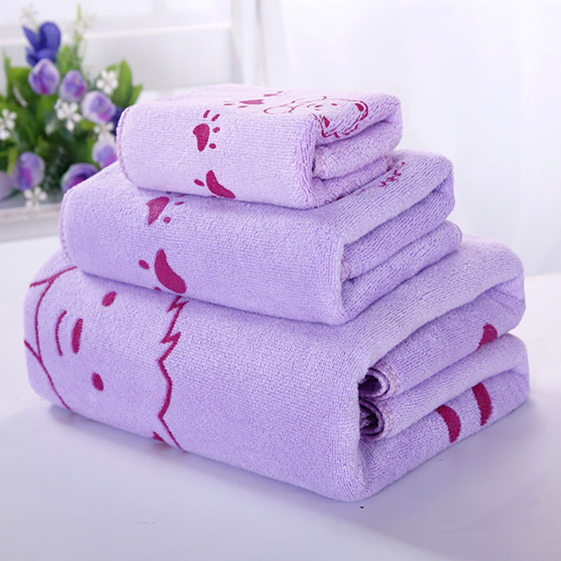 浴巾三件套比纯棉柔软超强吸水不掉毛卡通儿童成人男女裹胸大毛巾