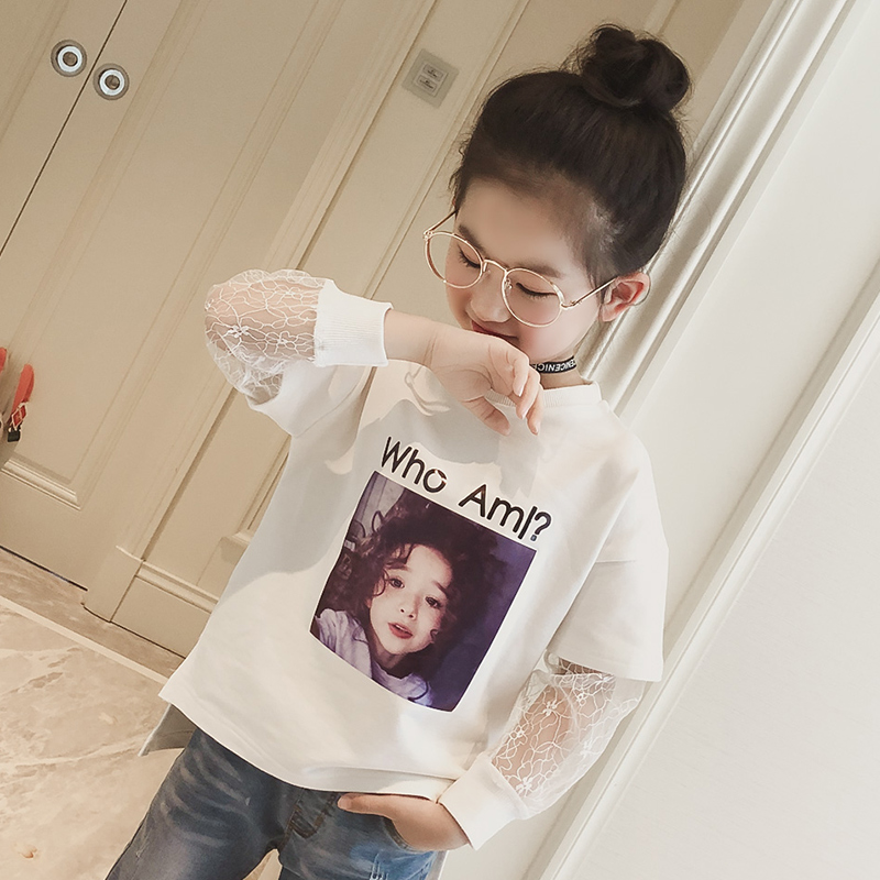 春装新款卫衣 韩版女装网纱拼接长袖T恤圆领字母印花套头上衣潮女