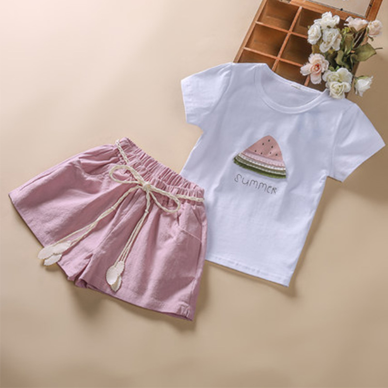女童夏季套装2026新款儿童短袖6t恤7短裤8女孩两件套9公主10-12岁