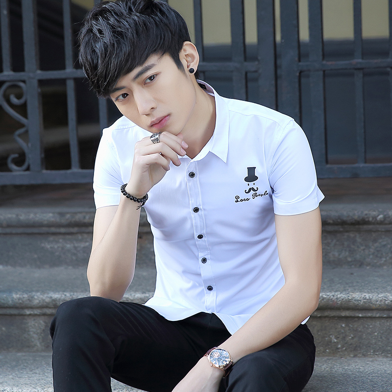 2026夏新款男装韩版短袖衬衫男士青少年修身休闲时尚百搭衬衫