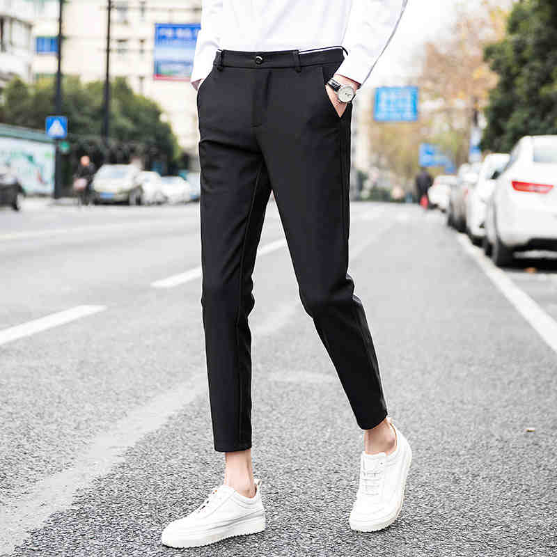 春季九分裤男裤修身裤子男韩版潮流休闲裤男士小脚裤西裤男生