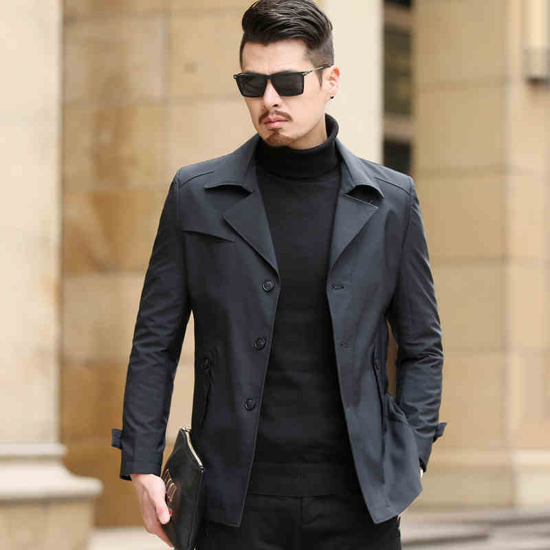 新款春秋男装男士青年修身英伦长款休闲有加肥加大码大衣外套风衣