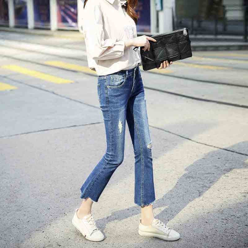 微喇牛仔裤女2026春秋新款韩版高腰显瘦ins超火的裤子九分喇叭裤