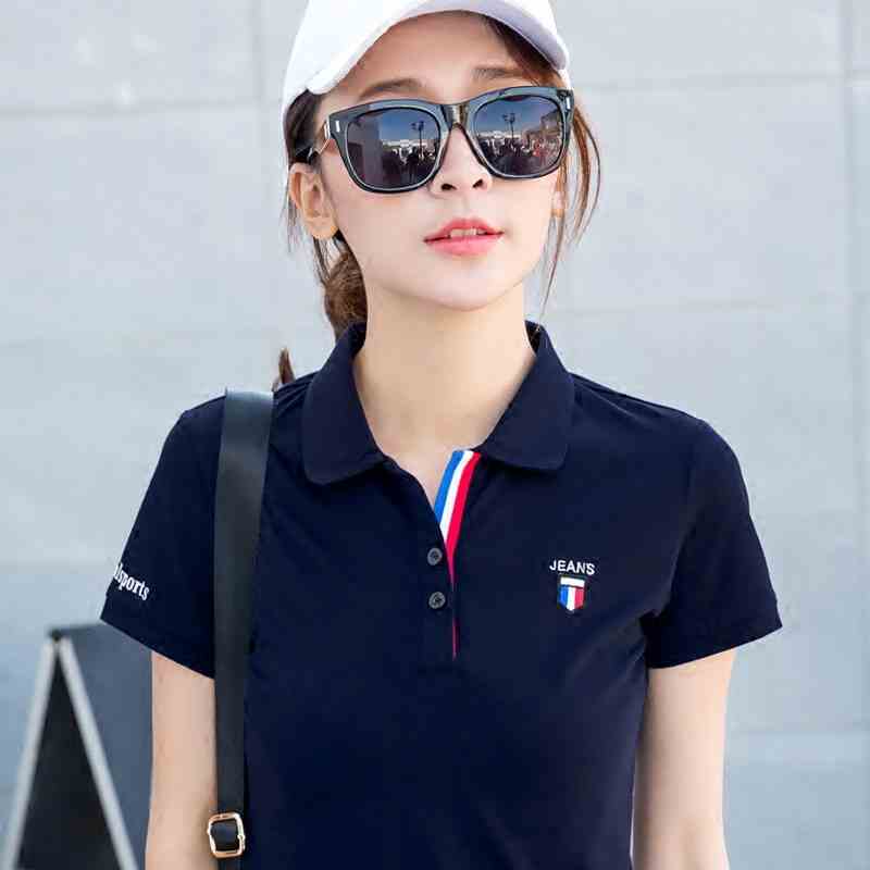 夏季翻领运动T恤女士大码纯棉短袖女2026新款上衣宽松体恤polo衫