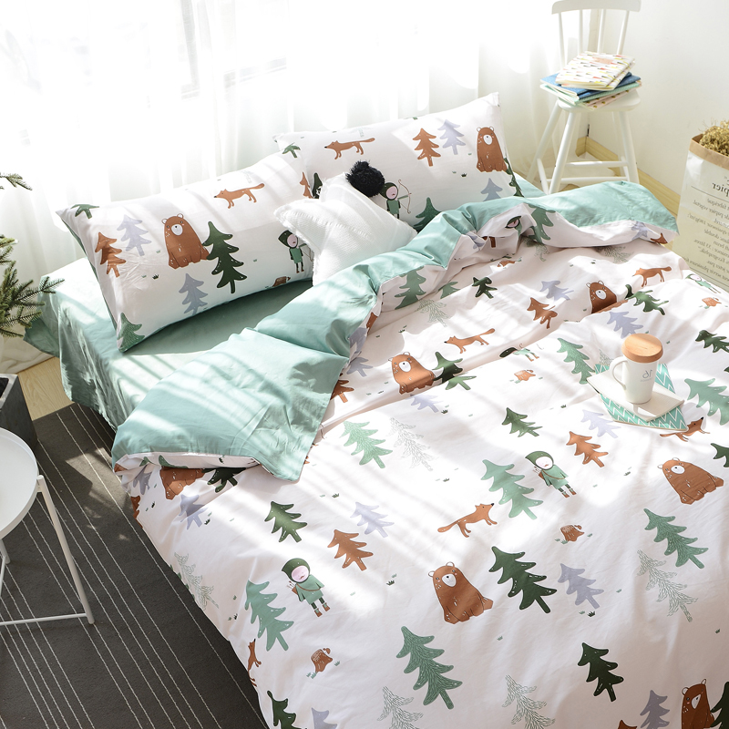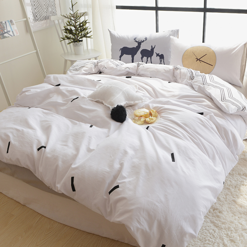 > 北欧风纯棉四件套全棉床品三4套件床上用品床单床笠1.5/1.8米简约
