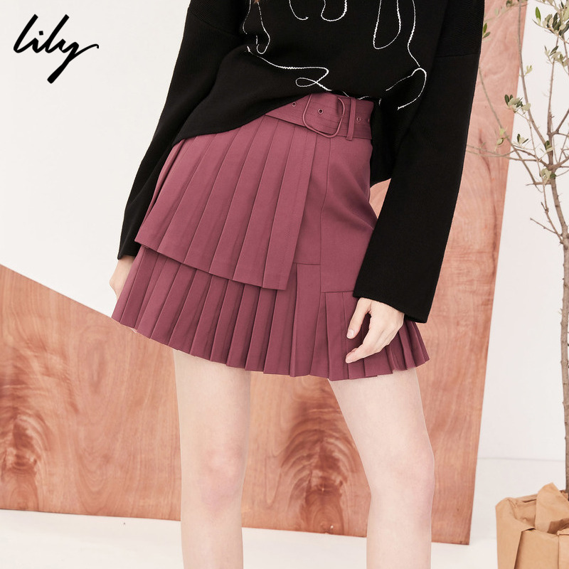 Lily2026春新款女装通勤双层百褶裙A字裙短裙半身裙118110C6610